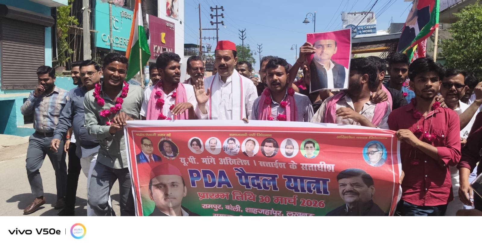 शाहजहांपुर। वर्ष 2027 में उत्तर प्रदेश में PDA व सपा सरकार बनाकर अखिलेश यादव को मुख्यमंत्री बनने के लिए जनपद रामपुर से दिनांक 30 मार्च 2026 को PDA पैदल यात्रा बरेली के मुलायम सिंह यूथ ब्रिगेड के जिला उपाध्यक्ष गौरव यादव के नेतृत्व में शुरुआत हुई।