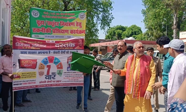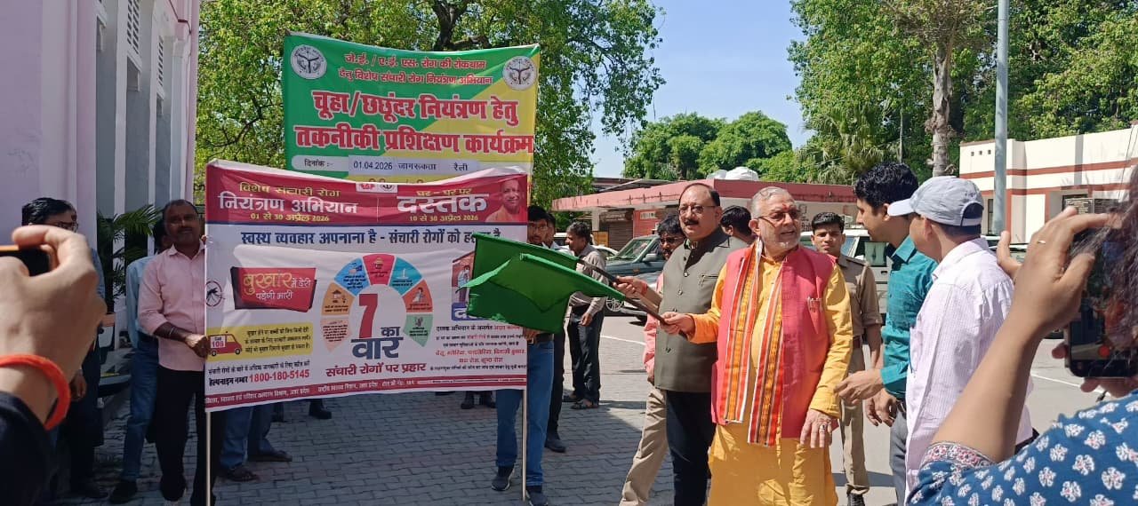 शाहजहाँपुर। माननीय वित्त एवं संसदीय कार्य मंत्री सुरेश कुमार खन्ना ने कलेक्ट्रेट परिसर से संचारी रोग नियंत्रण अभियान की जन जागरूकता रैली को हरी झंडी दिखाकर अभियान का शुभारंभ किया। यह अभियान जनपद में दिनांक 1 अप्रैल 2026 से 30 अप्रैल 2026 तक संचालित किया जाएगा। अभियान के अंतर्गत 10 अप्रैल से 30 अप्रैल 2026 तक “दस्तक अभियान” भी चलाया जाएगा, जिसके माध्यम से आशा एवं आंगनबाड़ी कार्यकर्ता घर-घर जाकर आम जनमानस को संचारी रोगों से बचाव के प्रति जागरूक करेंगी।