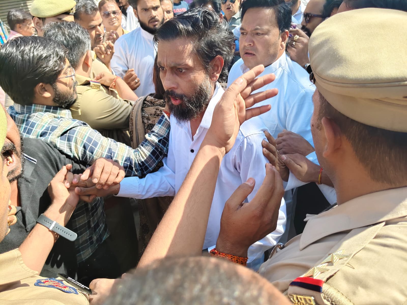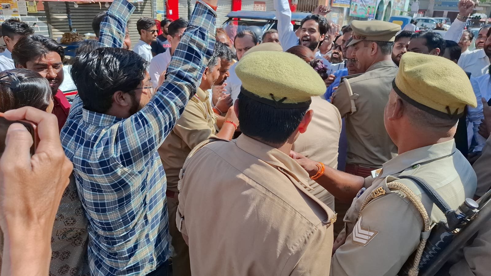 पुलिस की इस बीच कार्यकर्ताओं को हल्की चोट भी लगी और कुछ पदाधिकारियों के जूते चप्पल