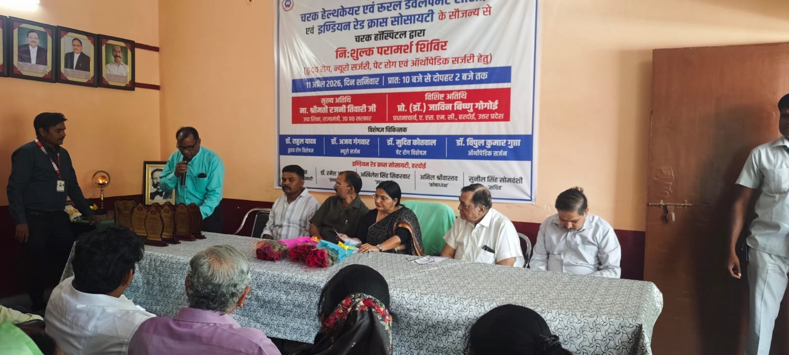 रेड क्रॉस हरदोई द्वारा चरक हॉस्पिटल लखनऊ के सहयोग से आयोजित किया निशुल्क चिकित्सा शिविर