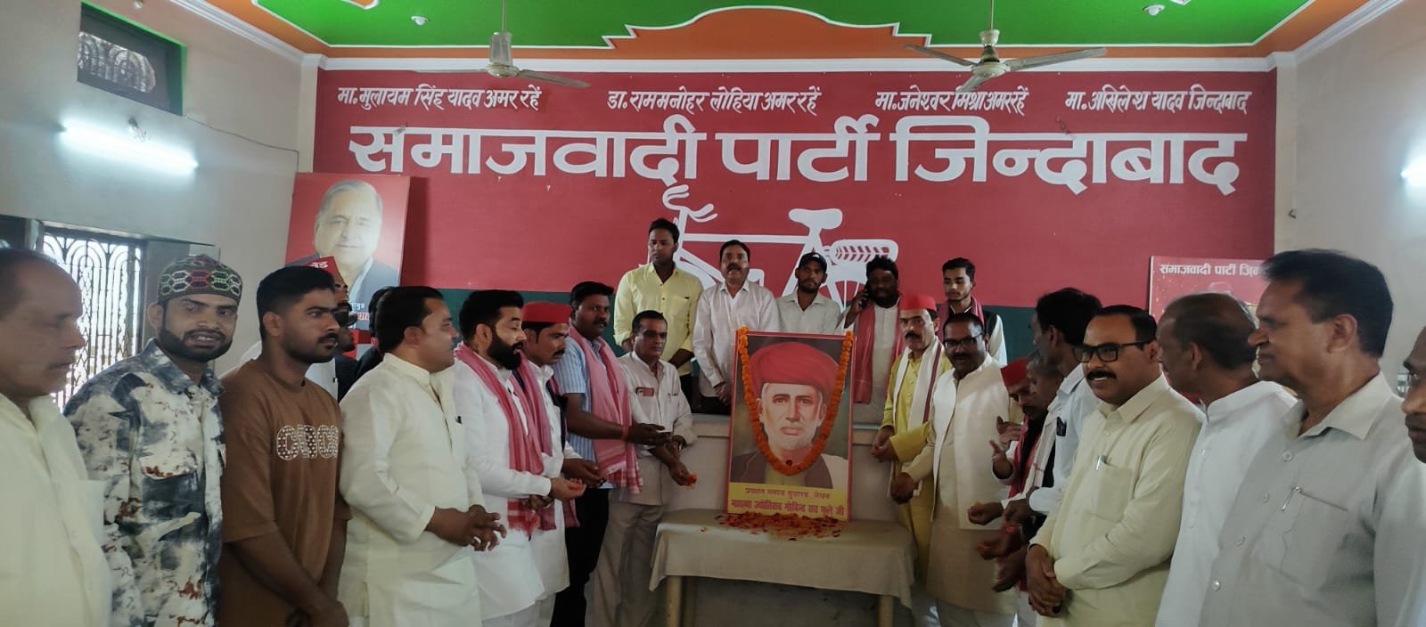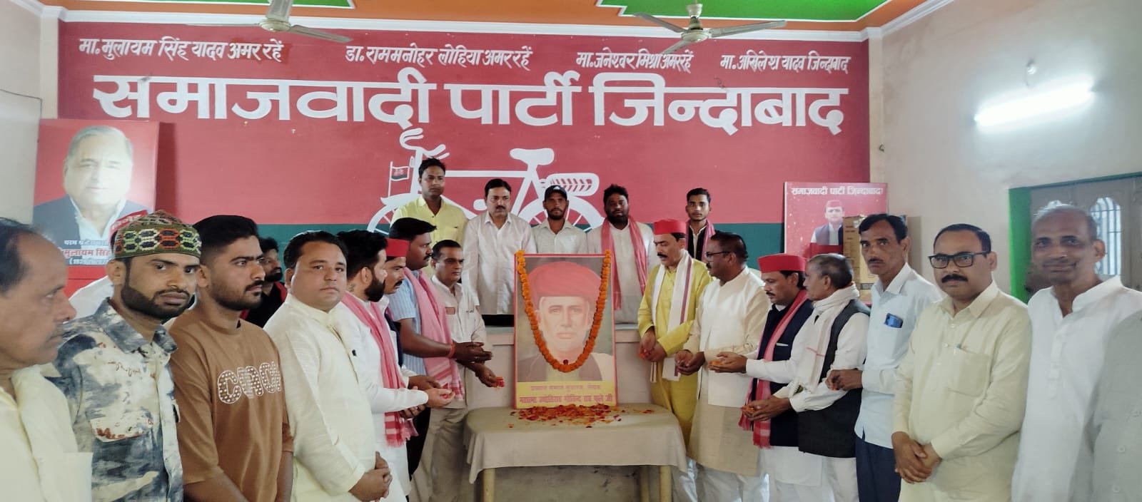 इस मौके पर उनके चित्र पर पार्टी के सभी नेताओं व पदाधिकारीयों एवं कार्यकर्ताओं ने पुष्प अर्पित कर उनको याद किया।