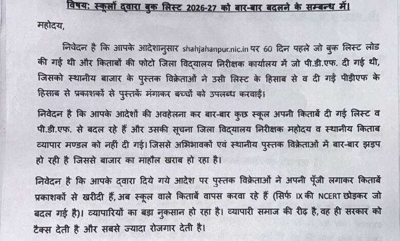 स्कूलों द्वारा बुक लिस्ट 2026-27 को बार-बार बदलने के सम्बन्ध जिला पुस्तक स्टेशनरी व्यापार संघ ने डीएम को दिया मांगपत्र