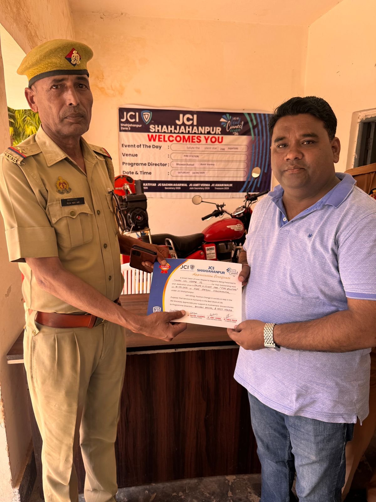 जेसीआई ने सल्यूट अ साइलेंट स्टार कार्यक्रम के तहत फायर कर्मियों को किया सम्मानित
