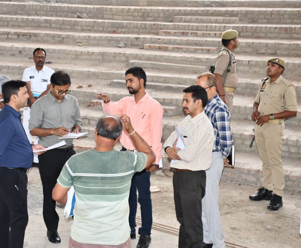 *फिरोजाबाद* जिलाधिकारी रमेश रंजन ने मुख्य विकास अधिकारी शत्रोहन वैश्य के साथ कलेक्ट्रेट परिसर में निर्माणाधीन ग्लास म्यूजियम और ऑडिटोरियम का औचक निरीक्षण किया, निरीक्षण के दौरान उन्होंने यहां के कार्यों की प्रगति का जायजा लिया, जिलाधिकारी ने ऑडिटोरियम में बॉल पेंटिंग का अवलोकन किया और उसकी कलात्मकता की सराहना की, उन्होंने ऑडिटोरियम में अत्याधुनिक साउंड सिस्टम स्थापित करने हेतु संबंधित अधिकारियों को निर्देशित किया, जिलाधिकारी ने स्पष्ट निर्देश दिए की ऑडिटोरियम के अवशेष कार्य को हर हाल में मई के अंत तक पूरा कर लिया जाए।
