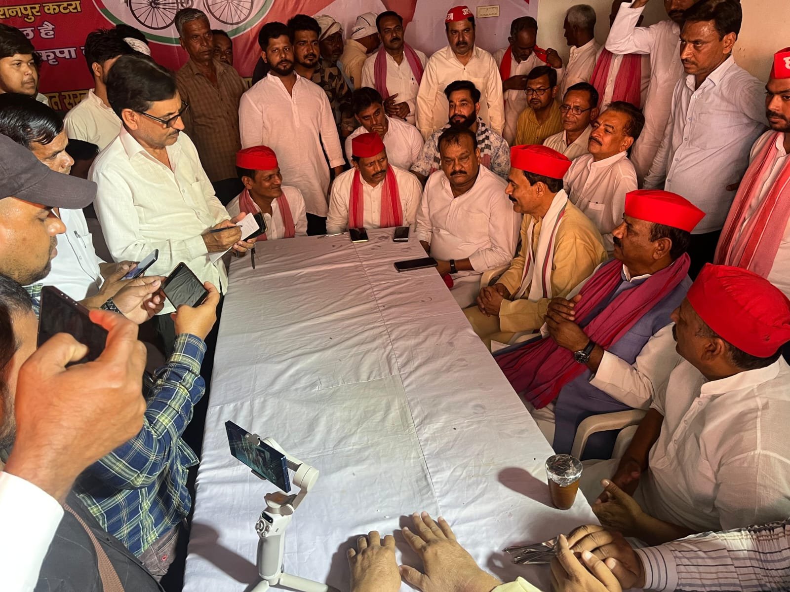 कटरा नगर पंचायत अध्यक्ष पद के प्रत्याशी डॉक्टर भरत पटेल के चुनाव कार्यालय पर समाजवादी पार्टी के प्रदेश अध्यक्ष श्यामलाल पाल ने पत्रकार बंधुओ से वार्ता की और समाजवादी पार्टी के नेताओं व पदाधिकारीयों एवं कार्यकर्ताओं से सपा प्रत्याशी डॉक्टर भरत पटेल को जीताने के लिए अपील की।