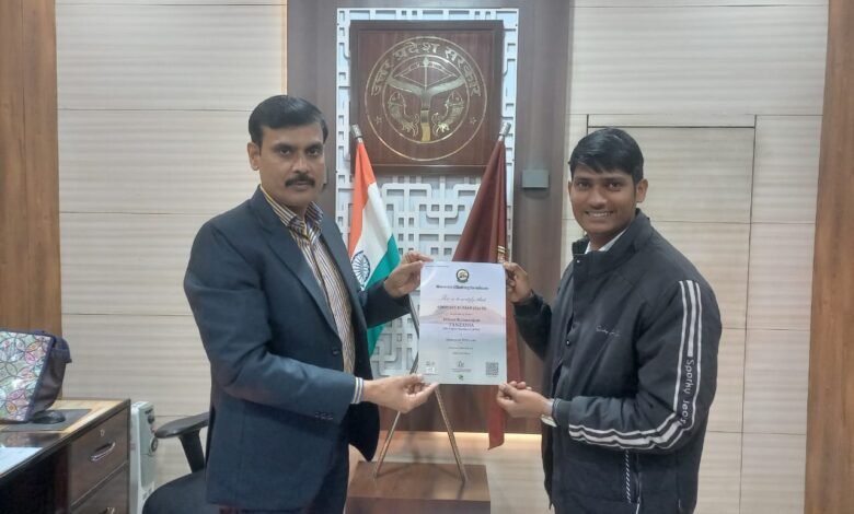 हरदोई। जनपद के एकमात्र पर्वतारोही अभिनीत मौर्य ने आज जिलाधिकारी मंगला प्रसाद सिंह से मुलाकात की जिलाधिकारी ने अभिनीत को उनके हाल के अफ्रीका महाद्वीप में उनके माउंट किलिमंजारो के पर्वतारोहण अभियान के लिए उन्हें बधाई दी। जिलाधिकारी ने उनके सफल पर्वतारोहण अभियान के लिए प्रमाणपत्र प्रदान किया। जनपद के कोथावां विकास खण्ड के आंट-सांट ग्राम के मूल निवासी पर्वतारोही अभिनीत ने 26 जनवरी को सुबह 6 बजकर 43 मिनट पर 19341 फ़ीट ऊंची माउण्ट किलिमंजारो की चोटी पर तिरंगा फहराया था। उन्होंने चोटी से प्रकृति संरक्षण का संदेश बैनर के माध्यम से दिया। मौसम की प्रतिकूलता भी उनके हौसलों को डिगा नही सकी। जिलाधिकारी मंगला प्रसाद सिंह ने अभिनीत की सफलता को लेकर कहा कि अभिनीत जैसे युवाओं का अप्रतिम साहस जनपद के युवाओं के लिए एक प्रेरणा है। उन्होंने पर्वतारोही अभिनीत को उनके आगामी अभियानों के लिए शुभकामनाएं दीं।